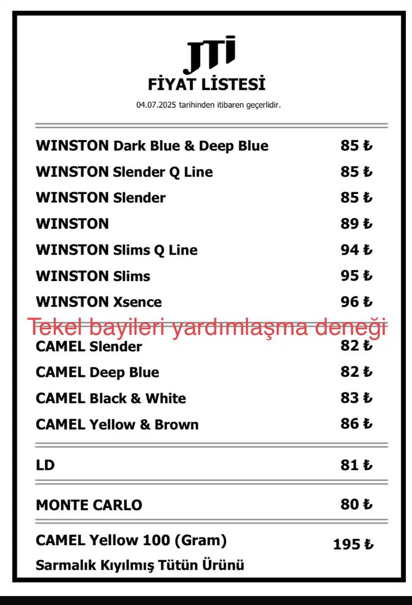 Tütün ürünlerinde Temmuz ayıyla birlikte beklenen zamlar başladı. İlk fiyat artışı, JTİ grubuna ait sigara markalarına geldi. Tekel bayileri yeni fiyat listelerini almaya başlarken, zamlı tarife 4 Temmuz 2025 Cuma gününden itibaren geçerli olacak.